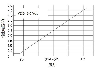 | আউট=ক×P খ মনোযোগ: আউট হল অ্যানালগ আউটপুট ভোল্টেজ, যা ভোল্টে পরিমাপ করা হয়; P হল চাপের মান, পরম চাপ, kPa তে; A এবং B এর জন্য নীচের টেবিলটি দেখুন। |